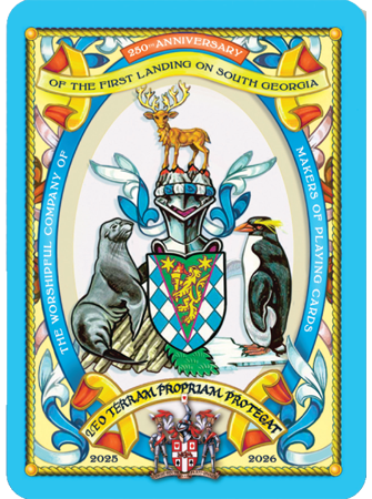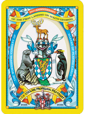 This year, the Court of Assistants has, exceptionally, granted permission for the production of a second set of cards, exclusively for sale in the South Georgia Museum, with profits for the benefit of South Georgia Heritage Trust. The charity twin set is identical, except for the box colour and the differently designed Ace of Spades, which features the logo of South Georgia Heritage Trust.
